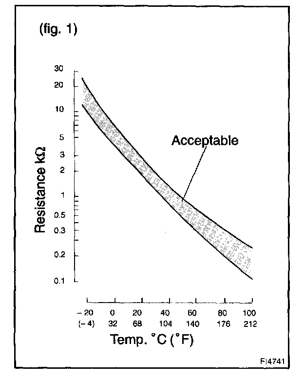 The lower the intake air temperature, the greater the thermistor resistance value, and the higher the intake air temperature, the lower the thermistor resistance value.