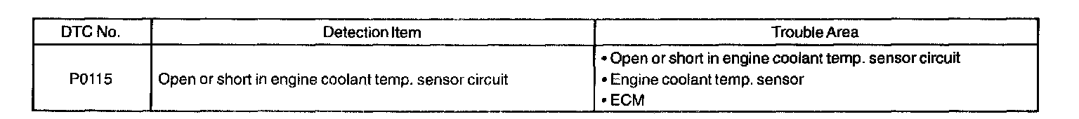 DTC P0115 ENGINE COOLANT TEMPERATURE CIRCUIT MALFUNCTIONCIRCUIT DESCRIPTION