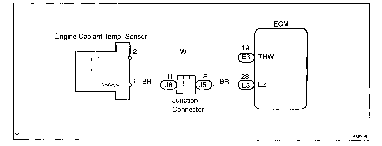 A thermistor built into the engine coolant temperature sensor changes the resistance value according to the engine coolant temperature.