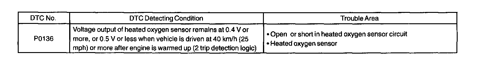 DTC P0136 OXYGEN SENSOR CIRCUIT MALFUNCTION (BANK 1 SENSOR 2)CIRCUIT DESCRIPTION
