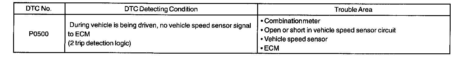 DTC P0500 VEHICLE SPEED SENSOR MALFUNCTIONCIRCUIT DESCRIPTION
