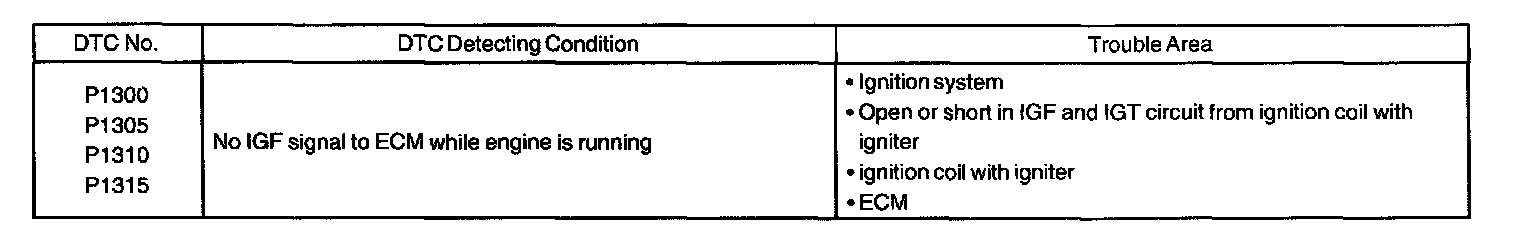- If DTC P1300 is displayed, check No.1 ignition coil with igniter circuit.