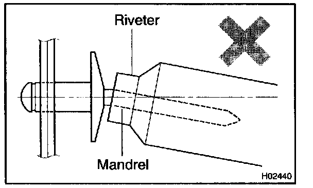 - Do not prize a riveter, as riveter is damaged, it is not tightened and the mandrel is bent.