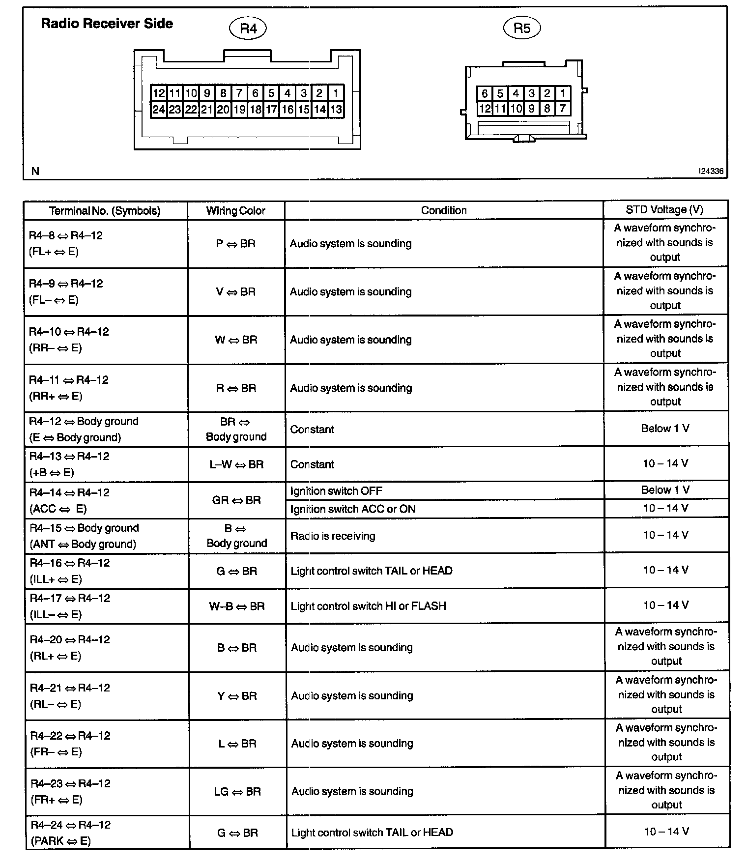Terminals Of ECU/pinouts Radio Receiver Assy: