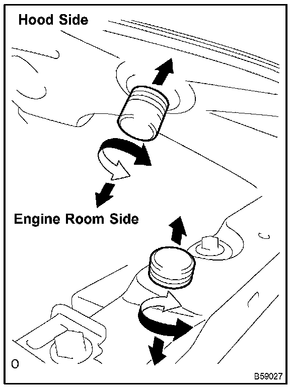1. Raise or lower the hood side's front end by turning the cushion rubber.