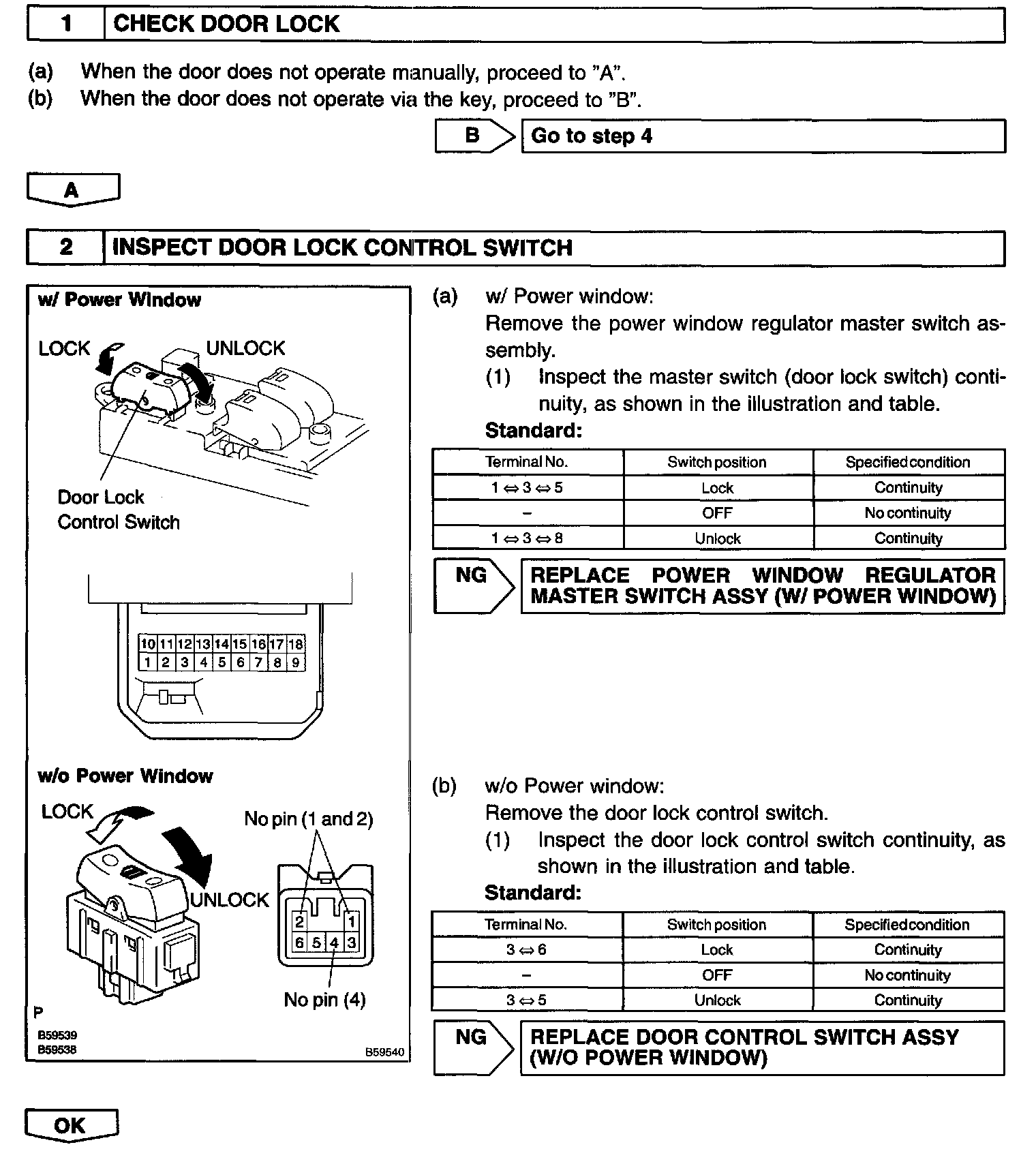 All Door Lock/Unlock Inop by Master Switch/Driver Door Key