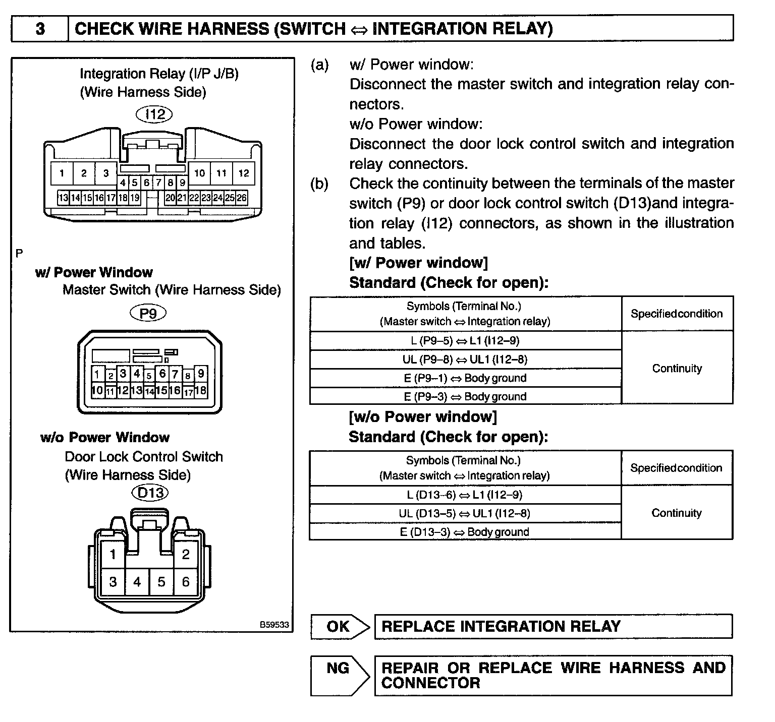 The integration relay receives a switch signal from the master switch, door lock control switch or the driver's door key and then drives the door lock motor.