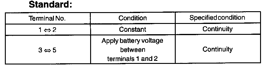 If the result is not as specified, replace the relay.