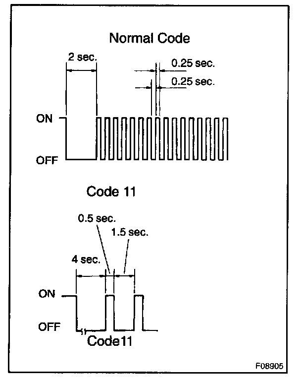 - As an example, the blinking patterns for normal code and codes 11 are shown.