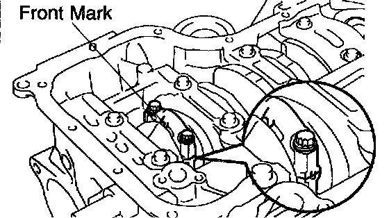 f. Check that the front mark of the connecting rod cap is facing in the correct direction.