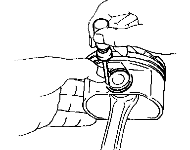 c. Using a plastic hammer and brass bar, lightly tap out the piston pin and remove the connecting rod.