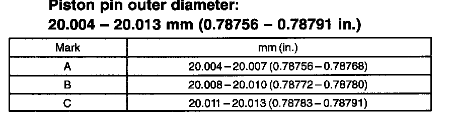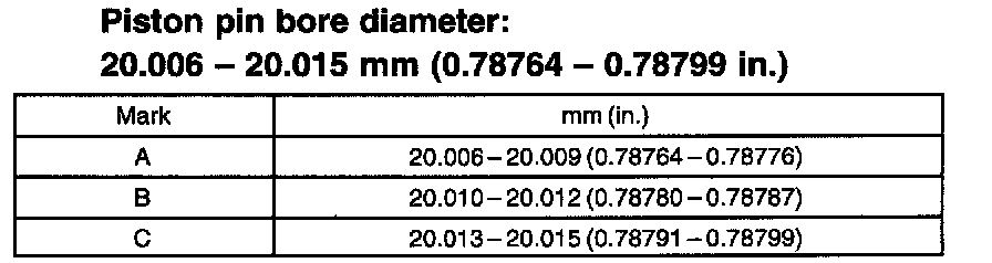 Piston diameter: 78.872 - 78.972 mm (3.1052 - 3.1091 inch)