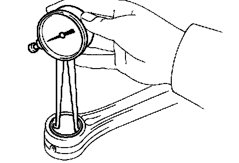 a. Using a dial indicator, measure the thrust clearance while moving the connecting rod back and forth.