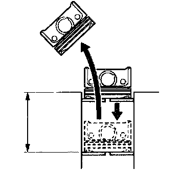 a. Using a piston, push the piston ring a little beyond the bottom of the ring travel, that means 110 mm (4.33 inch) from the top of the cylinder block.