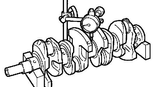 a. Using a dial indicator and V-blocks, measure the circle runout, as shown in the illustration.
