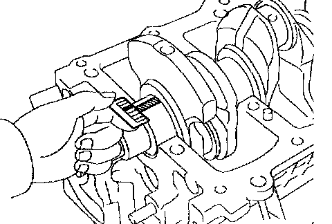 b. Using a micrometer, measure the diameter of each main journal at the points shown in the illustration.