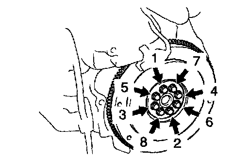 d. Install and uniformly tighten the 8 bolts, in several passes, in the sequence shown.