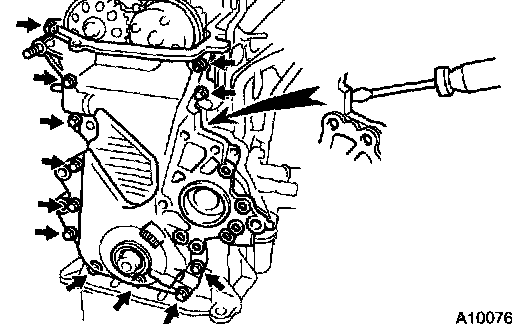c. Remove the timing chain cover by prying the portions between the cylinder head and cylinder block with a screw driver.