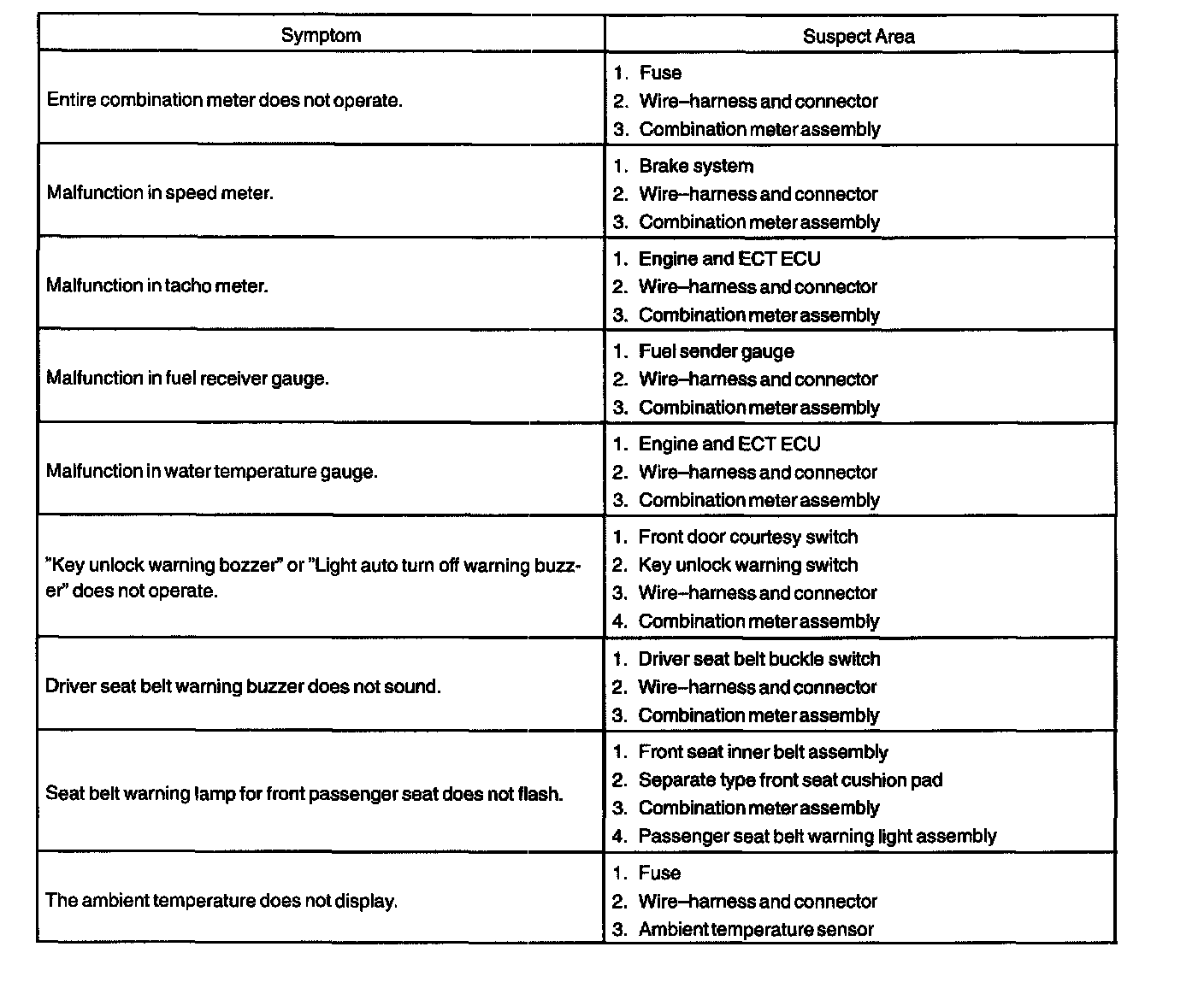 Problem Symptoms Table: