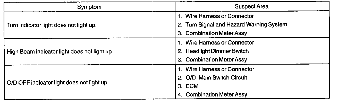 Problem Symptoms Table - Indicator Lights (Combination Meter):