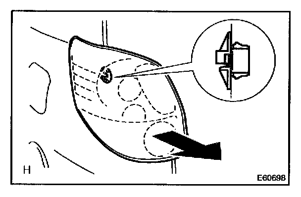 c. Pull out the rear combination light assy LH to the back of the vehicle, and remove.