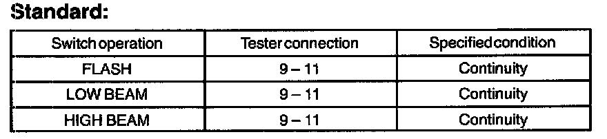HINT: Turn headlight dimmer switch to the HEAD position when checking low beam and high beam.