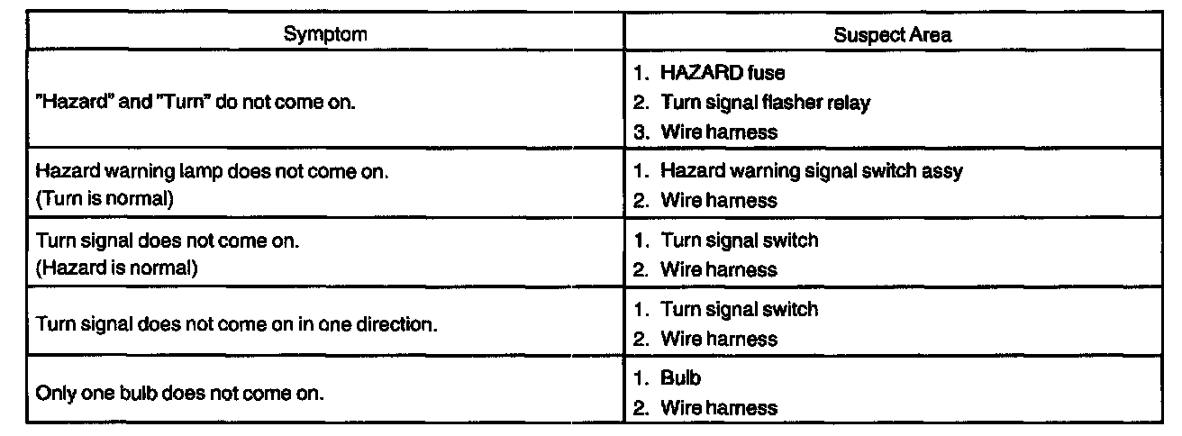 Problem Symptoms Table - Turn Signal And Hazard Warning: