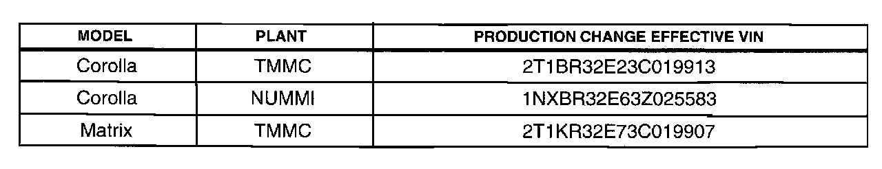 ^ 2003 model year Corolla and Matrix vehicles with 1ZZ-FE engines produced BEFORE the Production Change Effective VIN shown below.