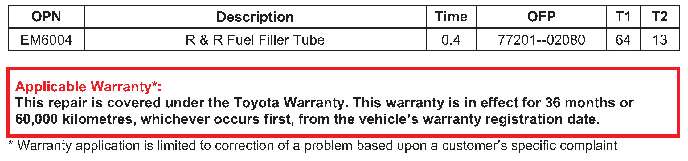 2. Replace the Fuel Tank Filler Pipe Sub--assembly with the updated part