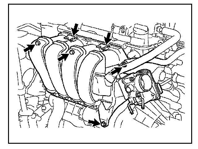 2. Following conventional diagnostic procedure, confirm if there is a leak where the intake manifold and cylinder head meet between each intake runner.