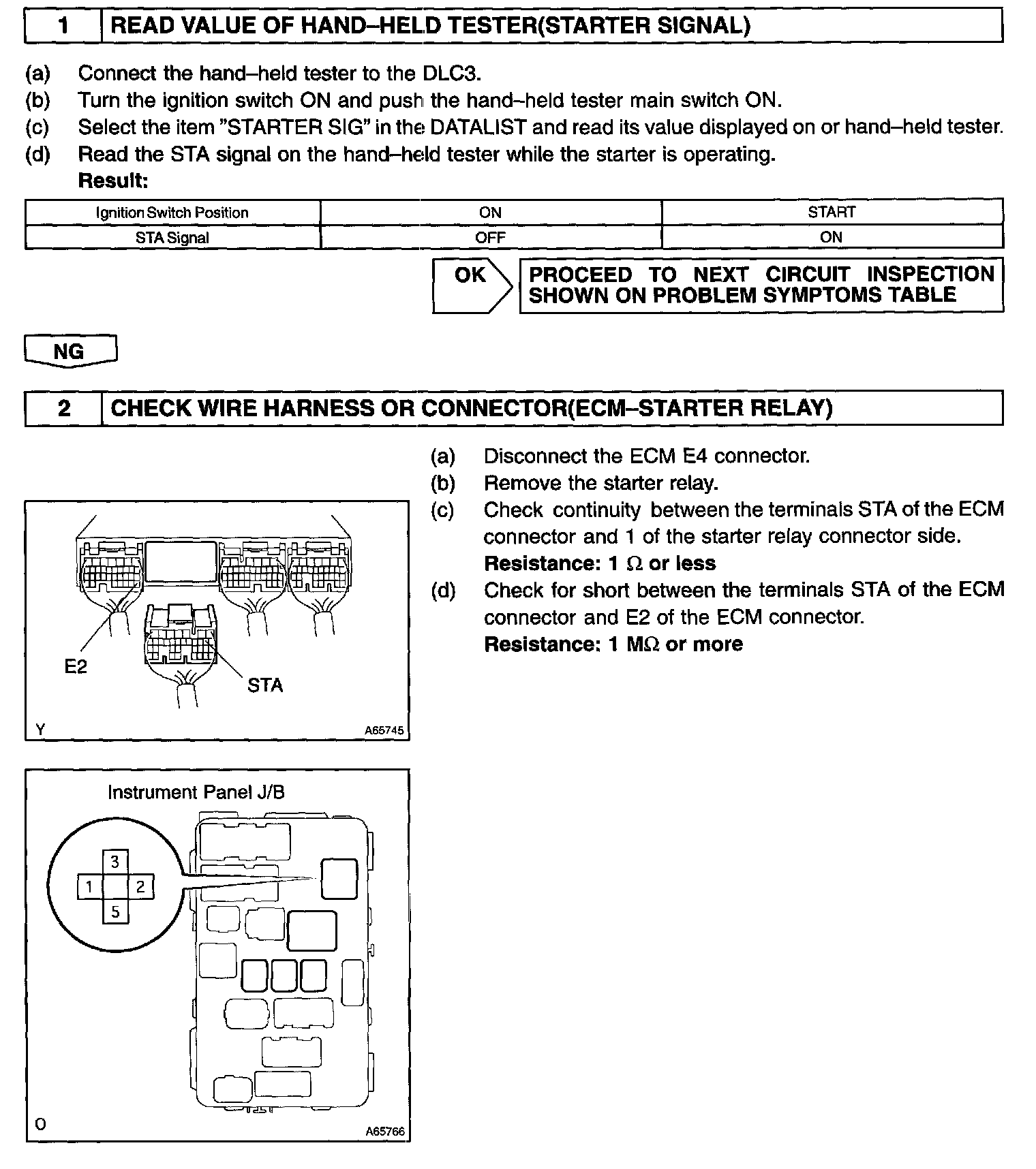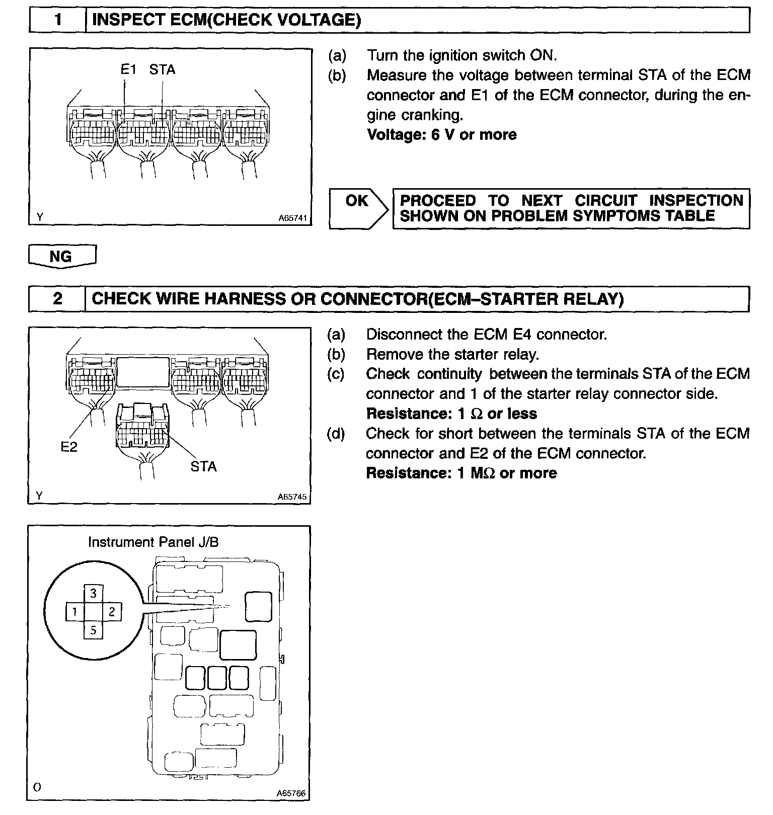 CIRCUIT DESCRIPTIONWhen the engine is cranked, the intake air how is slow, so fuel vaporization is poor. A rich mixture is therefore necessary in order to achieve good startability. While the engine is being cranked, the battery voltage is applied to terminal STA of the ECM. The starter signal is mainly used to increase the fuel injection volume for the starting injection control and after-start injection control.