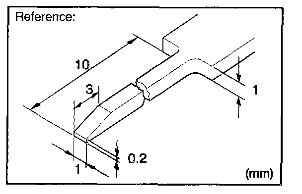 HINT: To remove the terminal from the connector, please construct and use the special tool or like object shown on the left.