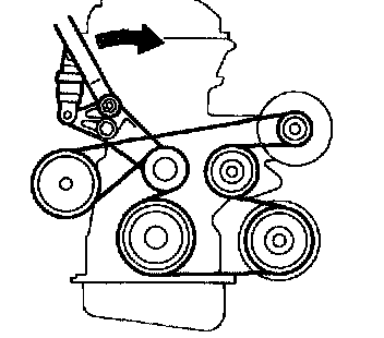 a. Turn the V-ribbed belt tensioner slowly clockwise and loosen it. Then, remove the fan and generator V-belt and put back the V-ribbed belt tensioner little by little and fix it quietly.