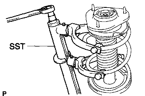 b. Using SST, compress the front coil spring LH.