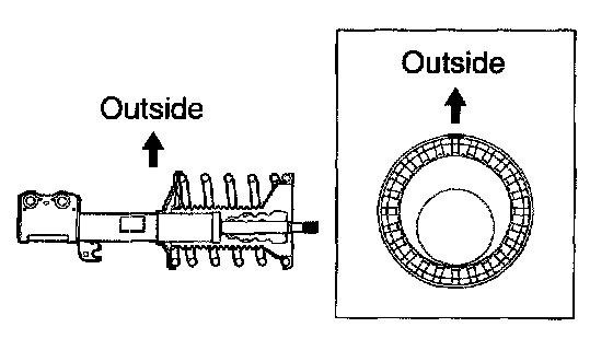 f. Install the front coil spring seat upper LH to the shock absorber assy front LH with the mark facing the outside of the vehicle.