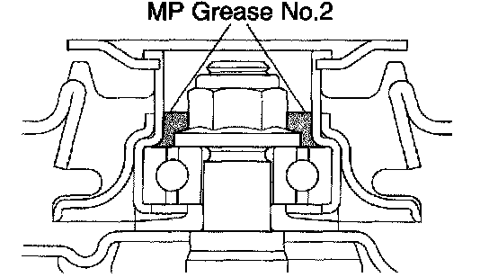 k. Apply MP grease No.2 into the suspension support sub-assy LH.