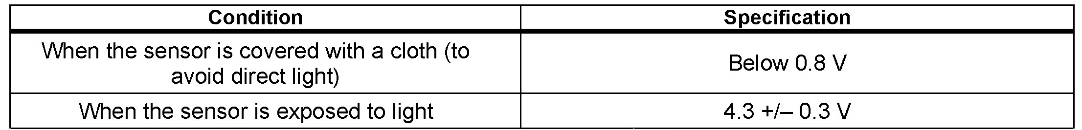 Four types of solar sensors are used on Toyota vehicles depending on the vehicle specifications. The inspection procedure for each type of sensor differs from the others. Select the appropriate inspection procedure from the table according to vehicle specifications and perform the inspection.