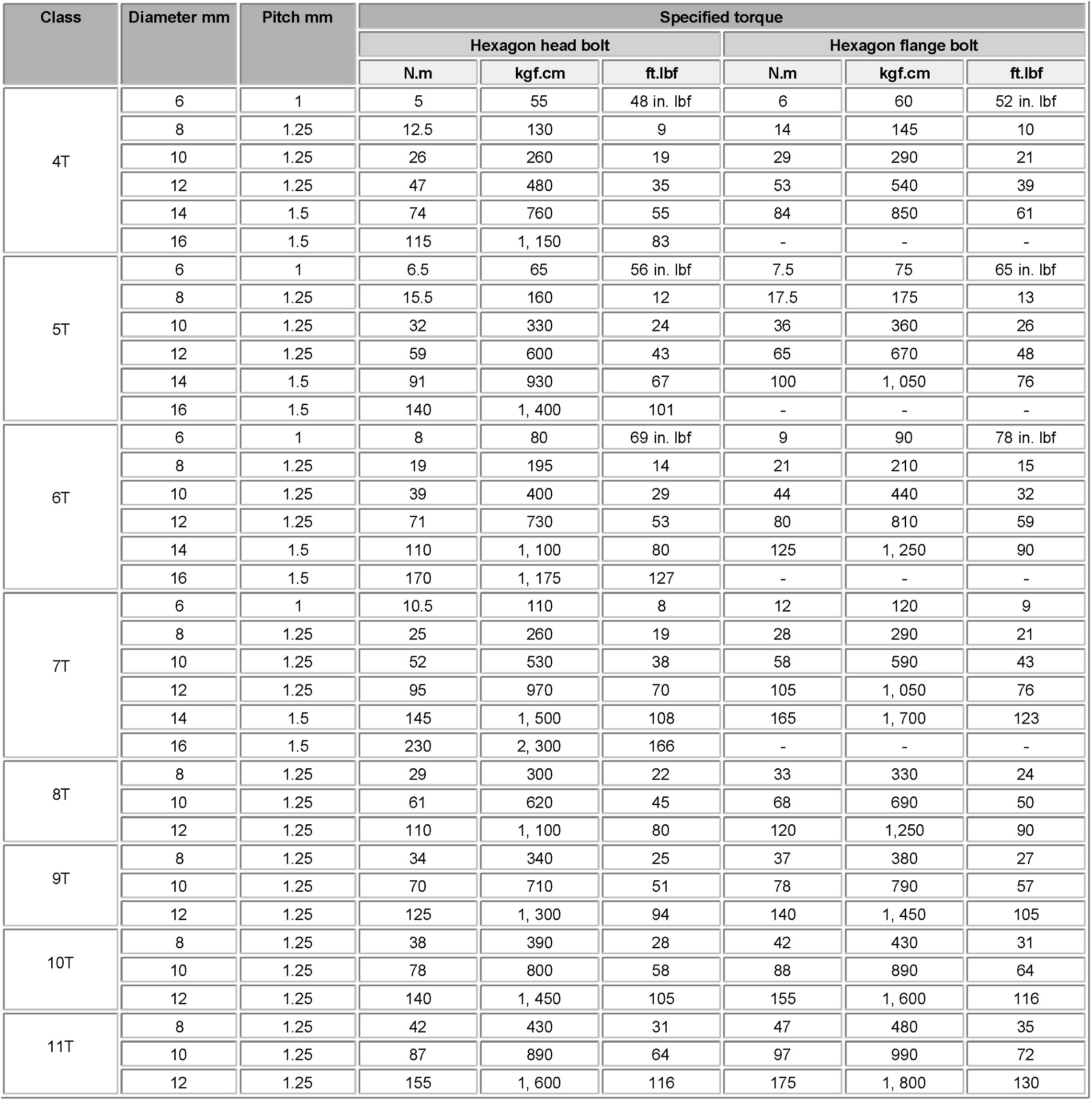 Canada - Bolts - Standard Bolt Torque Specifications