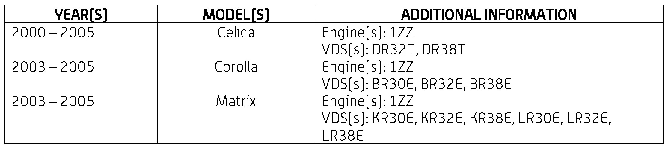 '00-'05 Celica, '03-'05 Corolla & Matrix