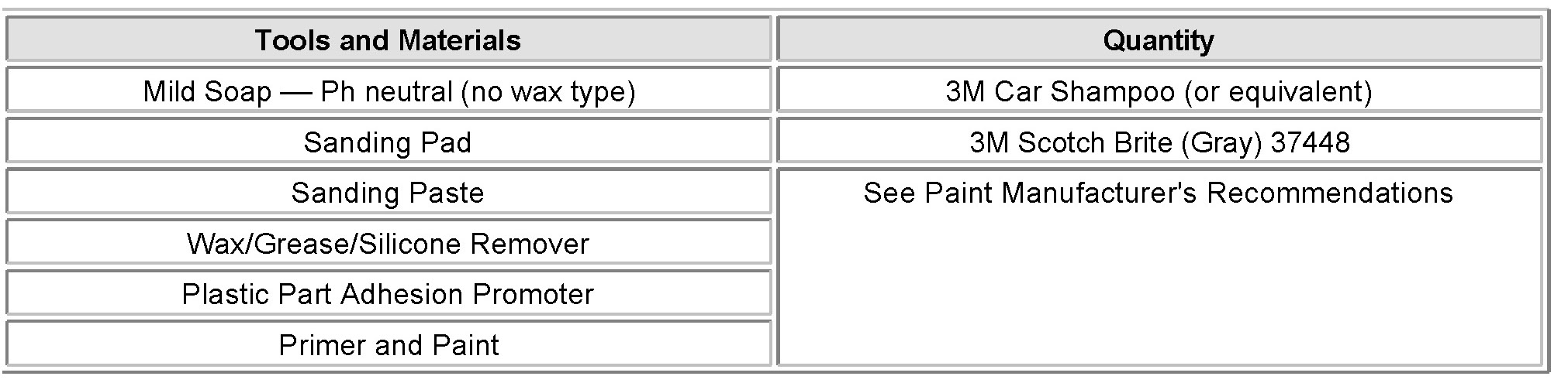 For additional information concerning the refinish process for plastic bumpers/cladding, please contact your respective refinish paint manufacturer's local representative.