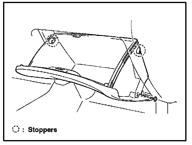 b. Deform the upper part of the glove compartment door assembly to release the stoppers.