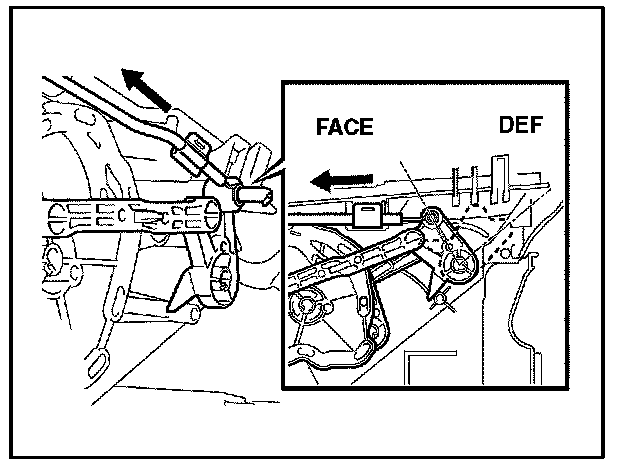 A. Operating the mode control lever, check that it properly stops at both ends of face and defrost.