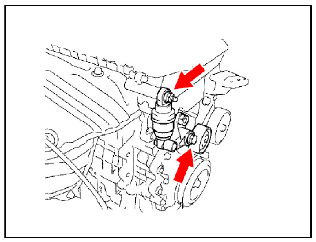 Some 1ZZ-FE and 2ZZ-GE engines may exhibit a squealing and/or rattling noise coming from the engine compartment during vehicle operation. The belt tensioner assembly has been improved to correct this condition.