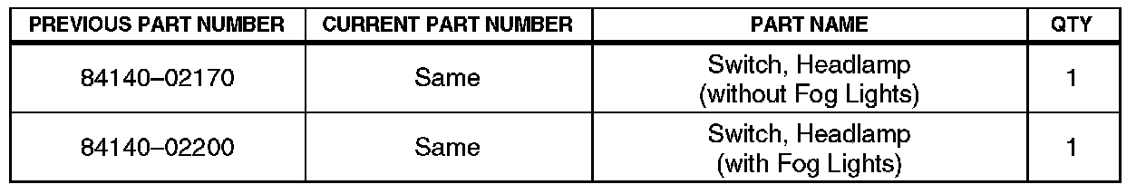 Some customers may complain that the headlights turn on with the switch in the "OFF" position while the vehicle is parked. This could result in a dead battery after an extended cold soak. An updated Headlamp Switch has been made available to address this situation.