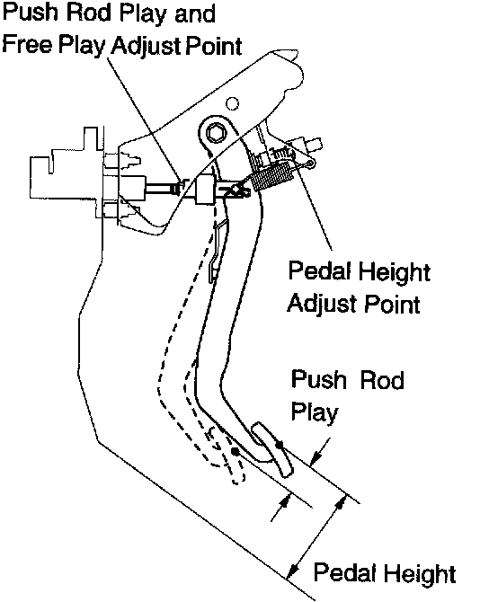 3) After adjusting the pedal free play, check the pedal height.