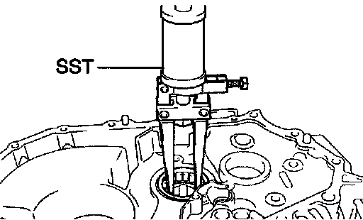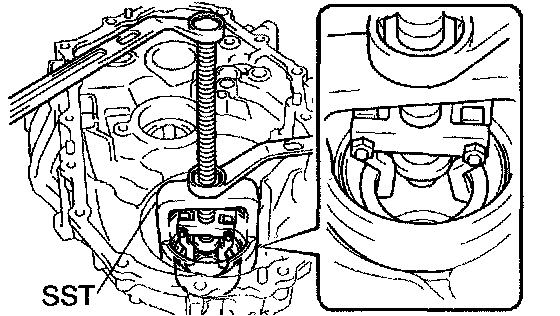 a. Using SST, remove the output shaft front bearing from the transaxle case.