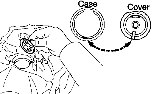 NOTICE: Install the output shaft (MTM) cover projection into the case side hollow.