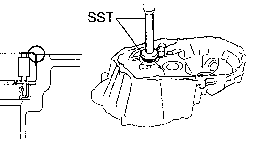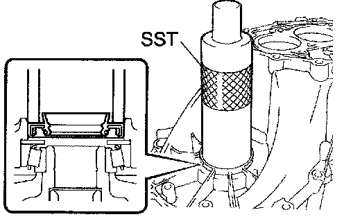 a. Using SST and a hammer, install a new transmission case oil seal to the manual transmission case.