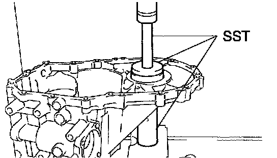 a. Using SST and a hammer, remove the transmission case oil seal from the manual transmission case.