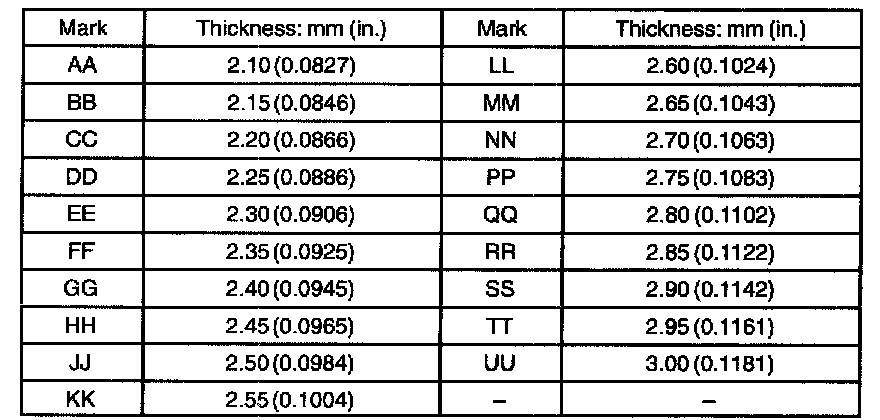 Standard clearance (A): 15.5 - 16.5 Nm (0.6102 - 0.6496 inch